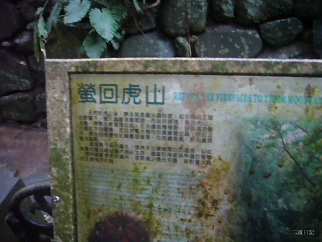 看了這個牌子,決定記下「或許可以到虎山看螢火蟲」的想法。