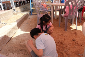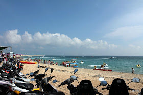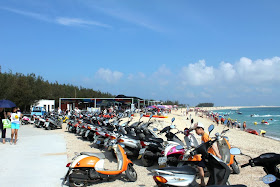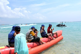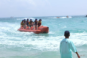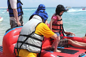 臭妹為什麼要我抱著呢?因為底下有一條礫灘帶,赤腳踩起來非常痛,偏偏這裡又是各項水上遊戲排隊的地方。